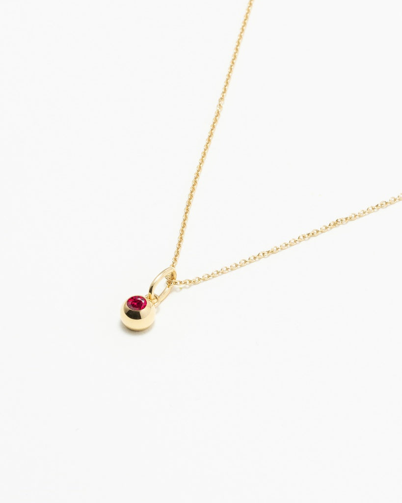 - Features a Preciosa Ruby Crystal set on a medium-length chain