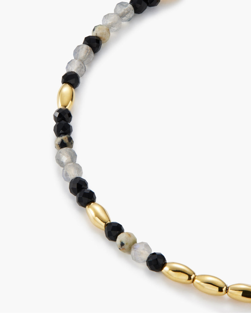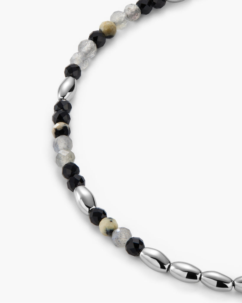 Gemstones: Black Agate, Grey Moonstone and Dalmatian Jasper