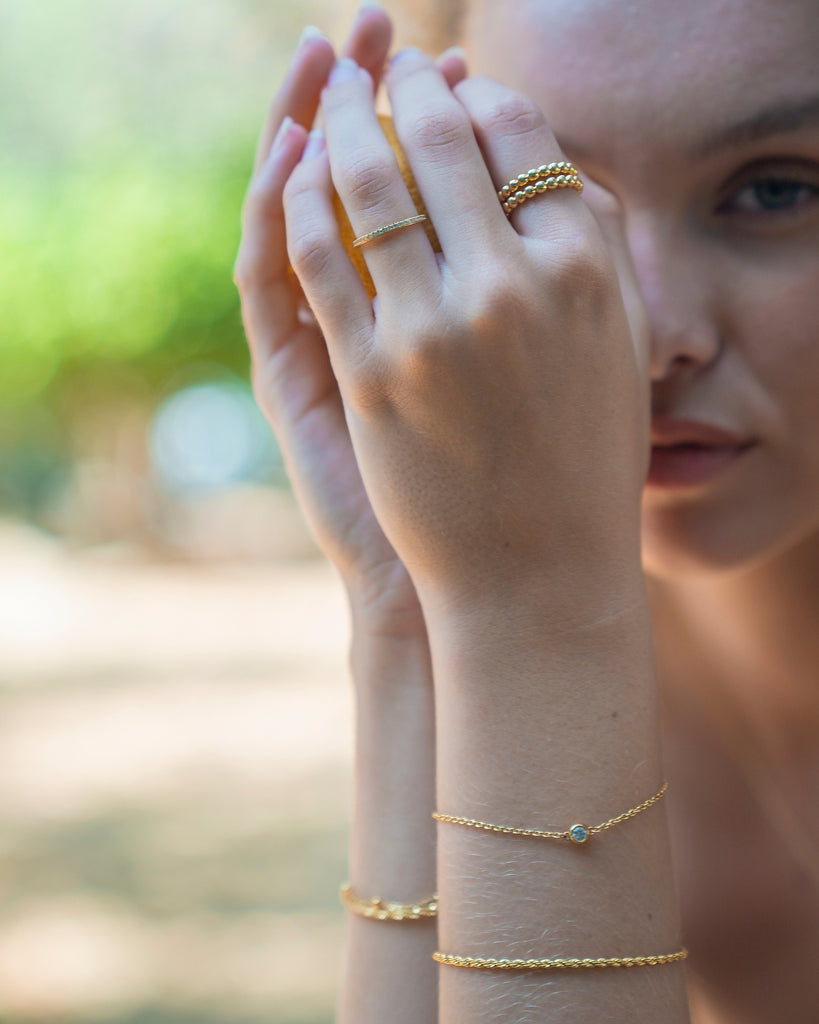 The duo features our Demi Rope Bracelet and Solitaire White Sapphire Bracelet. Each piece in this stack is available in Gold and Silver.