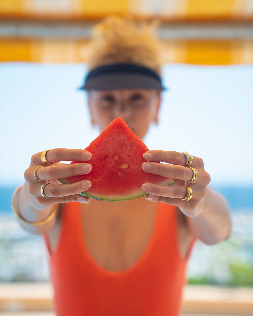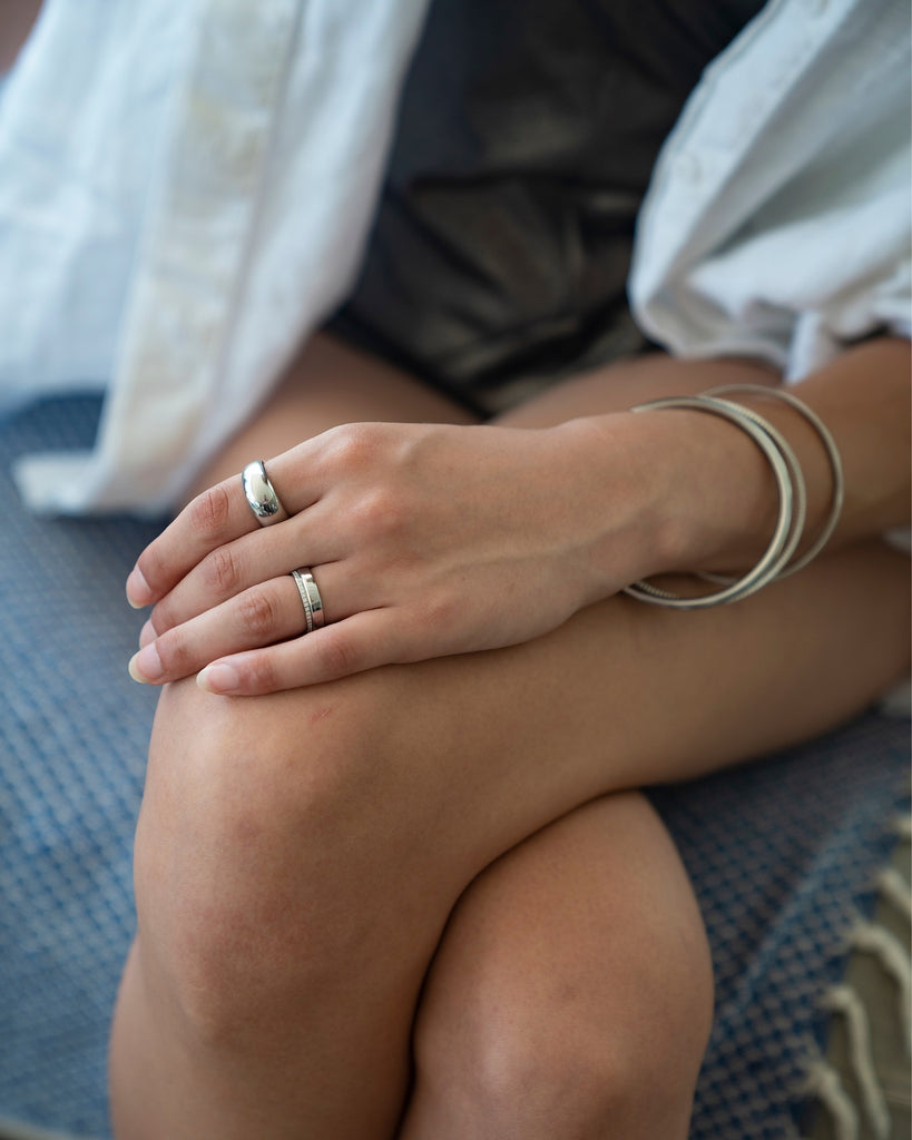 Bold Band 簡約粗款戒指:有金色、銀色可供選擇。