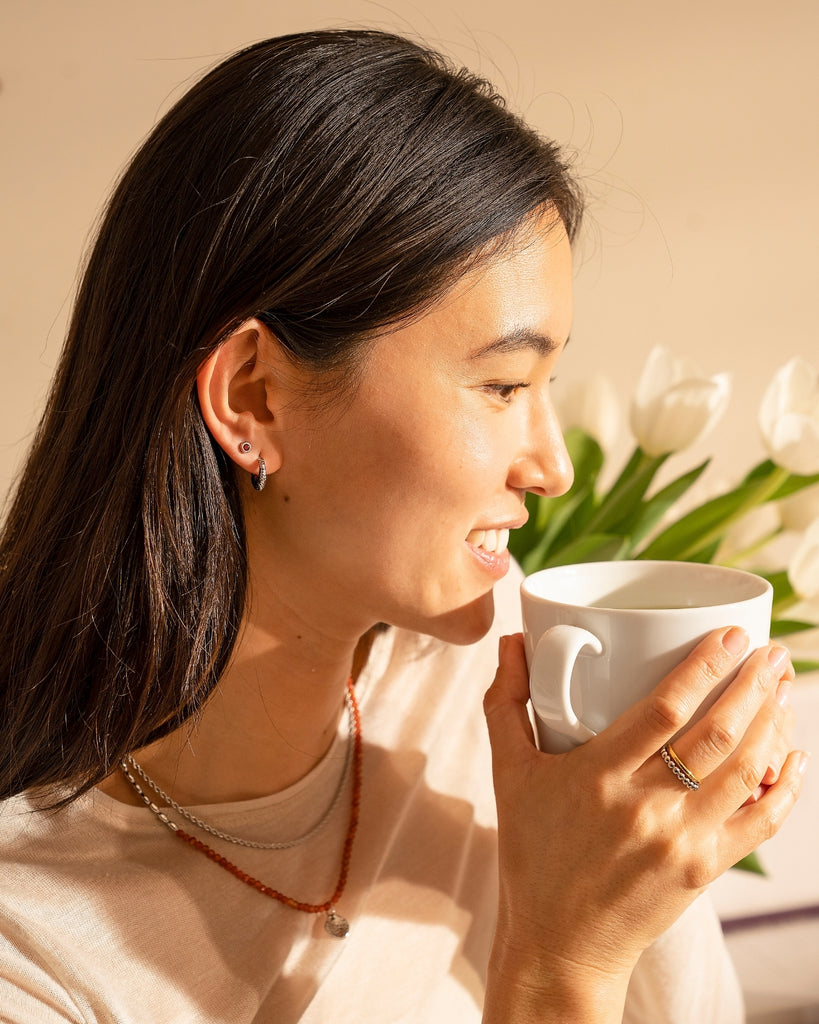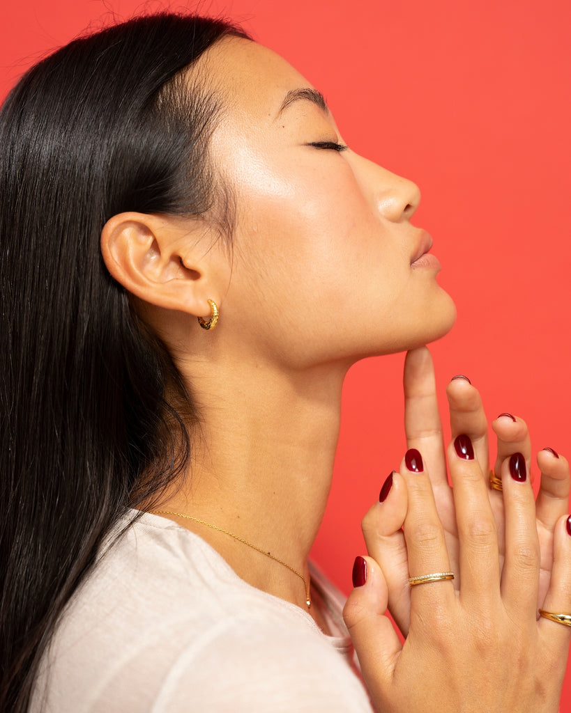 Maeve 系列採用錘打紋理技術,紋理小耳圈重量適中,設計充滿細節又實搭,適合每天配戴。